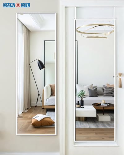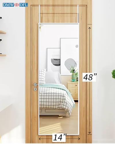 ?????LARGE FULL BODY VIEW?Dmwoodfl's full-length door mirror measures a generous 48" x 14", providing ample space to view your entire figure from head to toe. This large-sized mirror ensures a comprehensive reflection, perfect for checking outfits, makeup, and overall appearance.