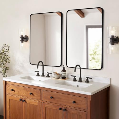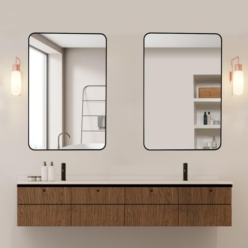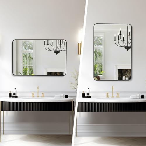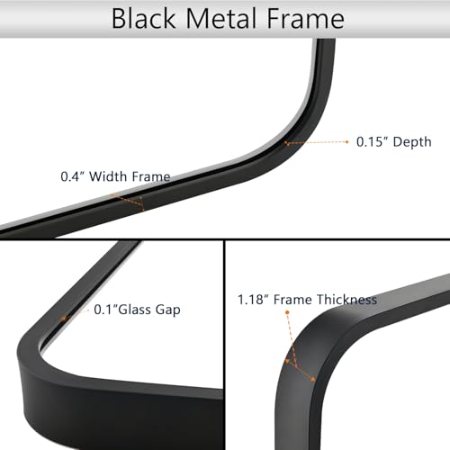 Minimalist Design: With a slim frame finished in a matte black color, the wall mounted bathroom mirror achieves a contemporary “floating” effect on the wall that complements modern decor with a soft, refined look. The framed bathroom mirror balances function and style, fitting well in bathrooms, above dressers, hallways, and entryways