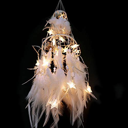 Material:Metal circle, beads, high quality natural white feather, Led lights.
