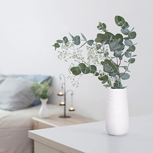 D'vine Dev 8 Inch Textured White Elegant Oval Ceramic Vase for Flowers, Home Décor Vase with Design Box, VS-LD-A-1