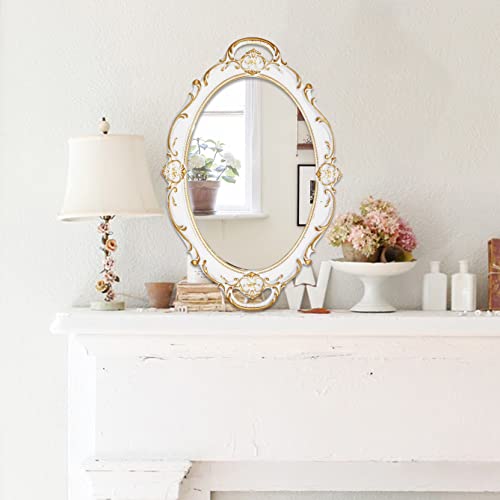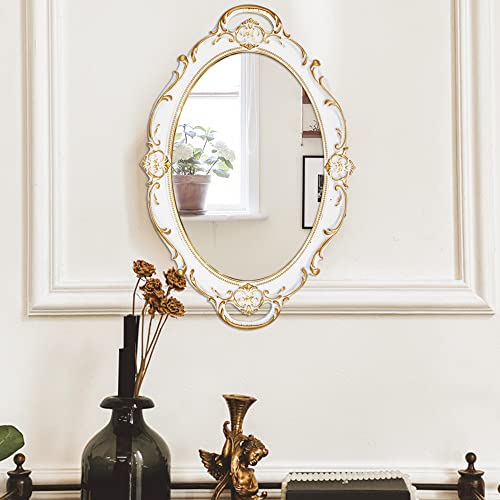 Eaoundm 14.5 x 10 inchs Oval Antique Decorative Wall Mirror Vintage Hanging Mirror (White)