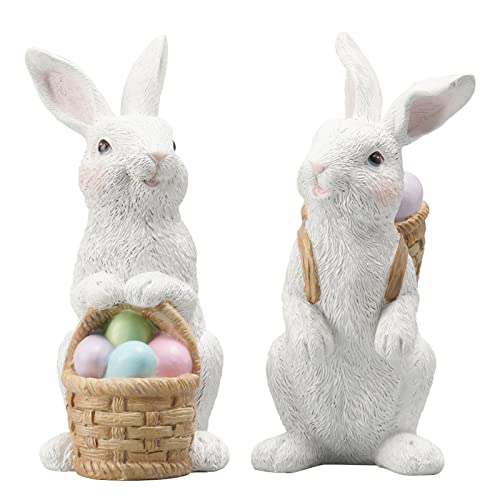?????EASTER EGG BASKET DESIGN?: These two easter bunny figurine carry egg basket. Expression vivid and cheeks are slightly red. beautiful hand-painted in details, vivid and colorfast