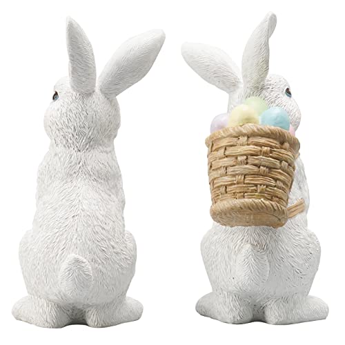 ?????EASTER EGG BASKET DESIGN?: These two easter bunny figurine carry egg basket. Expression vivid and cheeks are slightly red. beautiful hand-painted in details, vivid and colorfast