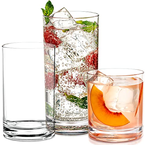 ACRYLIC GLASSES DRINKWARE SET: Set of 12 unbreakable drinking glasses |12-ounce and 16-ounce capacity | Top rack dishwasher safe