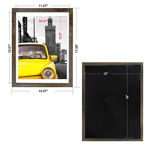 1. Elegant Design: This 12x16 brown picture frame perfect for framing your 11x14 picture with mat or 12x16 photo without mat. (Note: For easy loading photos, Actual mat opening size is designed about 10.31x13.3 inches.) High definition plastic (plexiglass) front cover, it displays like glass and more safely, you don't need to worry about injury due to accidental glass breakage.