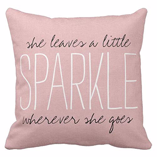 Emvency Throw Pillow Cover Cute Burlap Pink Sparkle Monogram Decorative Pillow Case Home Decor Square 16 x 16 Inch Pillowcase