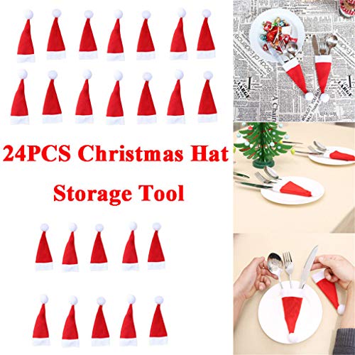 Christmas Silverware Holders Christmas Cutlery Holders Cute Decoration Christmas Dinner Table Santa Hat Silverware Cutlery Holders Pockets Knifes Forks Bag Wine Bottle Cap Cover Christmas Party Decoration