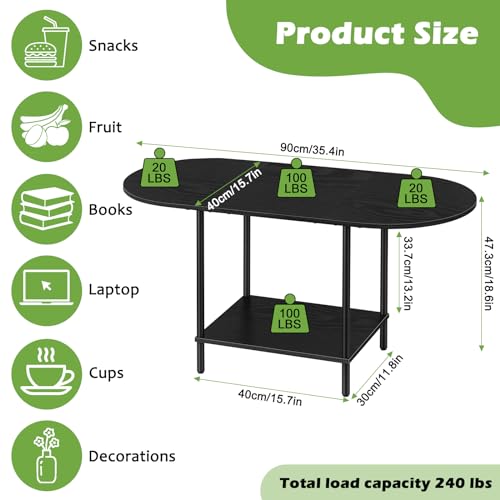 ETELI Black Coffee Tables for Living Room 2-Tier Small Oval Coffee Table Wood Accent Coffe Tables with Storage Shelf Modern Mesa De Centro Sala for Small Space, Home Office