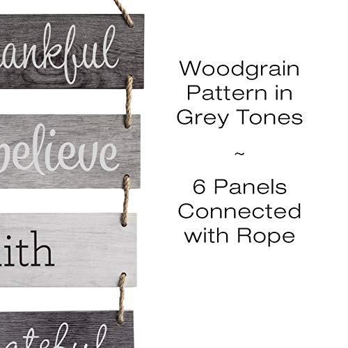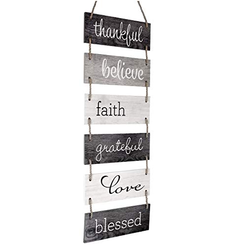 Excello Global Products Large Hanging Wall Sign: Rustic Wooden Decor (Grateful, Love, Believe, Thankful, Faith, Blessed) Hanging Wood Wall Decoration (11.75" x 32")