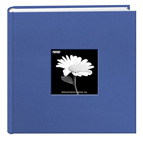 Fabric cover features a frame to insert a favorite photo and a deluxe rounded bookbound spine