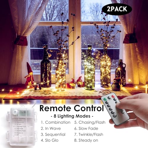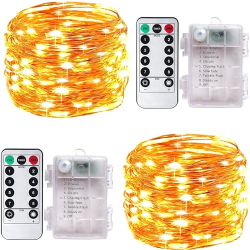Fairy Lights 2 Pack 33Ft 100 LED Battery Operated String Lights with 8 Modes Remote Timer Outdoor Waterproof Warm White Copper Wire Twinkle Lights for Bedroom, Dorm, Patio, Christmas, Party, Indoor