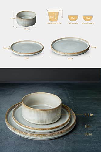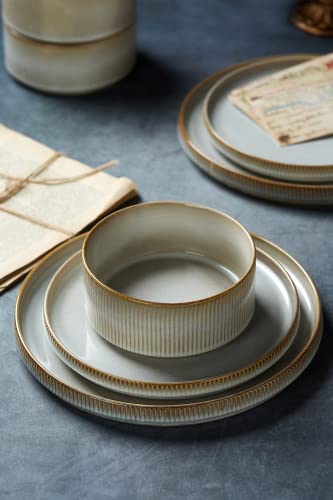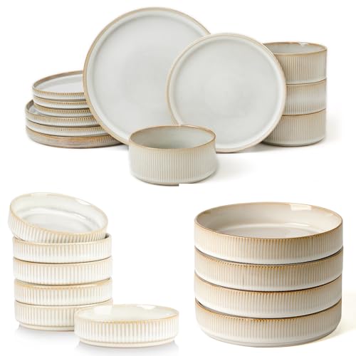 [FOOD GRADE NATURAL GLAZE]: Famiware tableware sets are made of superior stoneware and food-grade glaze. You can safely use them to serve steaks, salads, or desserts.
