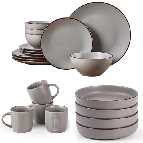 ?BEST CHOICE?The FAMIWARE Venus Plate and Bowl Set and Mercury Coffee Mugs Set and Pasta Bowls is a modern, minimalist design that captivates with its neutral matte glaze, interesting speckled pattern, and handcrafted reddish-brown rim. It's a great choice for housewarmings, holidays, weddings, and fun celebrations.
