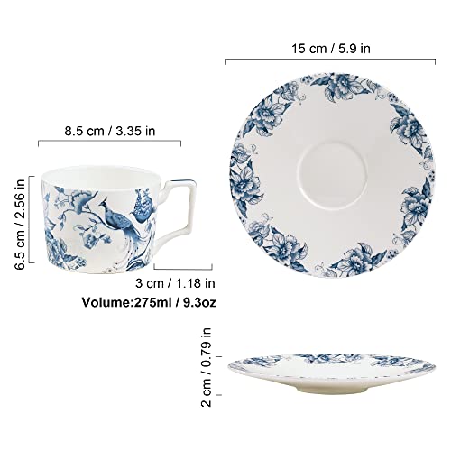 MATERIAL: Bone china, Pb-Free, Cd-Free. This china tea cup is dishwasher and microwave safe, easy to clean and heat, hand wash is recommended. Whether the latte cup is for tea, coffee or other beverages, the matching saucer can prevent the drink from spilling and soiling the table