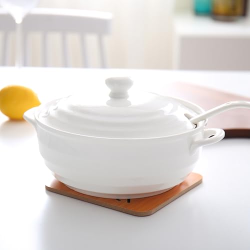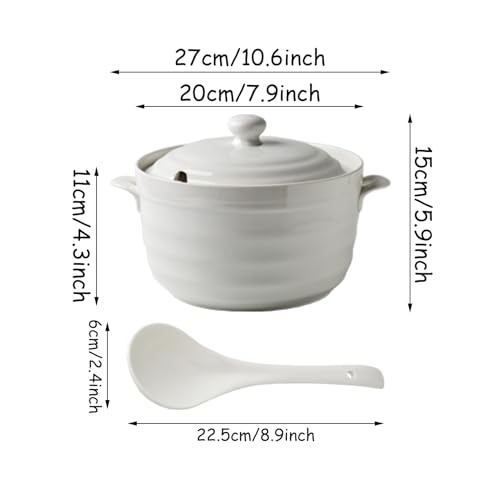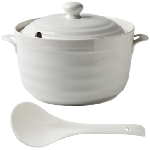 [Exquisite Appearance] - 2 specifications capacity white soup tureen, 3D relief, so pretty, very suitable for serving various kinds of food. Suitable for microwave, oven, dishwasher, disinfection cabinet. Caution: No open gas flame.