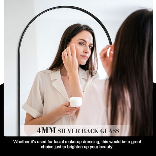1.STRONG & SAFE MIRROR - This arched mirror is constructed from 4MM tempered glass, which is 5 times stronger than standard glass and designed to withstand strong impacts without shattering. Its sturdy and durable build not only adds brilliance to your room but also creates an elegant and upscale living environment.