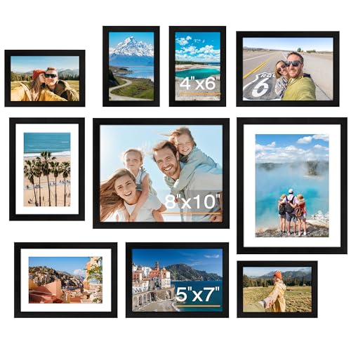 Multiple Sizes Included: This set of 10 picture frames includes 2 black 8x10 frames, 4 black 5x7 frames, and 4 black 4x6 frames, allowing you to get creative and create a loving gallery wall or display them individually in your home. It offers durability and longevity, making it an excellent choice for preserving valuable memories.
