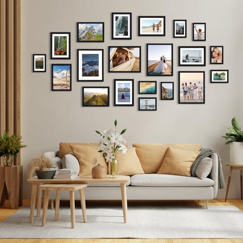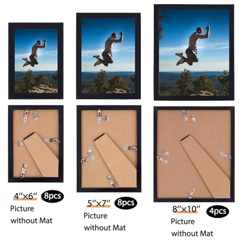 Multi Sizes Included: 20 Pack Picture Frames Set includes 4 pcs of black 8x10 picture frames, 8 pcs of black 5x7 frames, and 8 pcs of black 4x6 frames. This set of 20-piece picture frame can meet your various needs.