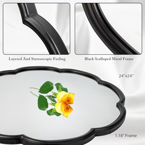 Exquisite Design - Crafted with high-end gold iron frame to make a beautiful flower pattern mirror. The 24" x 24" elaborate round scalloped mirror offers a modern and elegant alternative to the standard wall mirror.