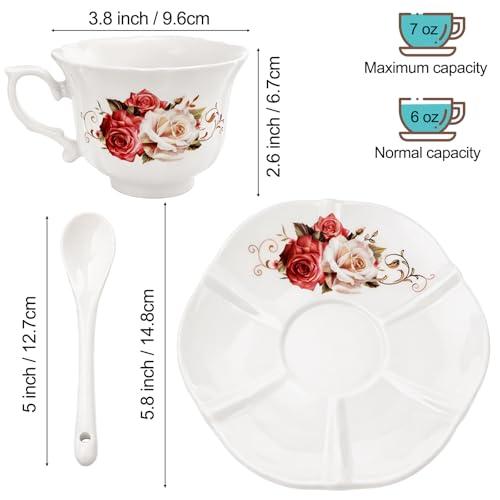 Beautiful Floral Pattern with Gold Trim: Exquisite pattern of rose flowers showing the tea cup with saucer set in rich vitality and love, decorative and is sure to bolster any home and party décor. Delicate Ivory coloring embellished with gleaming gold trim brings effortless beauty and highlights the craftsmanship and taste of life.