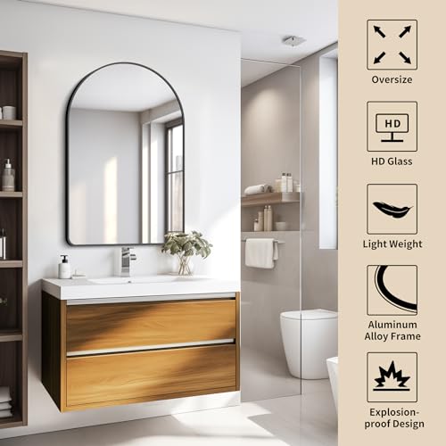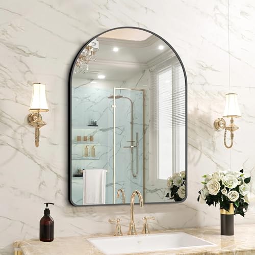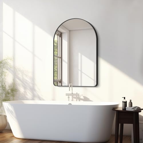 FORBATH Arched Bathroom Mirror 24x36 Inch,Bathroom Mirror Wall Mounted Modern Black Aluminum Alloy Frame Decor Dresser Mirror for Bedroom Living Room Entryway, Hanging or Leaning Against Wall
