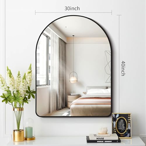 FORBATH Arched Wall Mirror, 30"x40" Bathroom Mirror Wall Mounted Modern Black Aluminum Alloy Frame Decor Large Dresser Mirror for Bedroom Living Room Entryway, Hanging or Leaning Against Wall