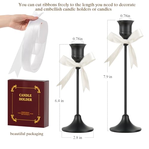 Unique Size: The long candle holders set features two sizes with heights of 6.4 inches and 7.9 inches, all sharing a base width of 2.8 inches; designed for 3/4-inch taper candles, the varying heights create an elegant visual effect.