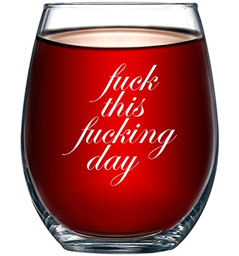 PERFECT BEST FRIEND GIFT! - They'll Enjoy a relaxing evening with their new favorite stemless wine glass, which reads Fuck This Fucking Day. Holds 15 ounces of their favorite white or red vino.