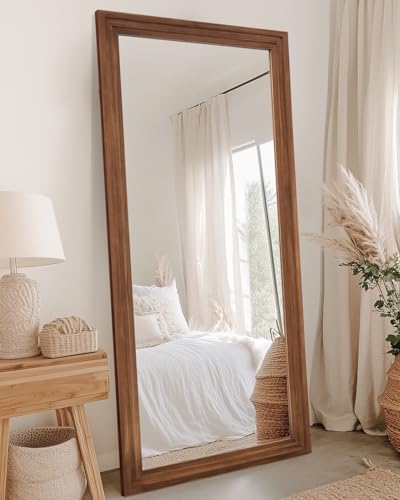?LARGE SIZE?The size of the Full Length mirror is 71"x32". The large-size mirror not only facilitates you to admire the whole body, but also makes your space more beautiful. Made of pure natural wood material, each mirror is unique
