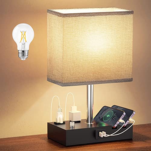 Regular E26 LED Bulb Dimmable : No more hassle, the lamp come with regular E26 Edison bulb, it gives out comfortable 2700K warm light, no flicker, no dazzle. The table lamp’s brightness can reach equivalent to 60W incandescent bulbs
