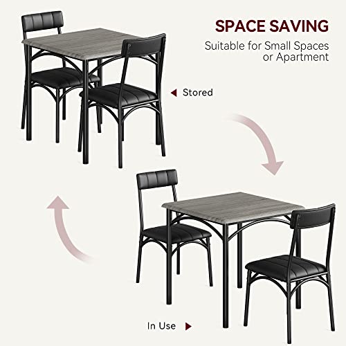 GAOMON Dining Table Set for 2, Kitchen Table and Chairs for 2 with Upholstered Chairs, 3 Piece Dining Room Table Set, Square Kitchen Table Set for Small Space, Apartment, Studio, Rustic Gray