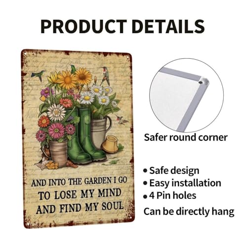 ?EASY DISPLAY ? With its four corners and four mounting holes, our outdoor garden signs offers both safety and ease of hanging. Whether you choose to use nails, rope, or double-sided tape, it effortlessly adds a delightful touch to any space. Hang tin signs on the wall, in the yard, or even in the garage, and enjoy the enhanced ambiance it brings to your surroundings.