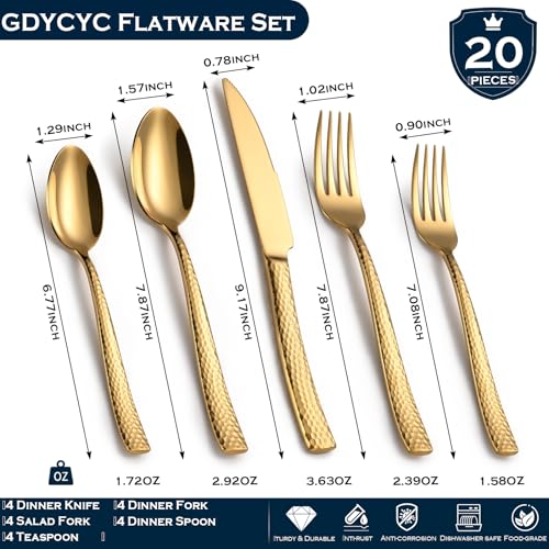 ?20 Piece Silverware Tableware Set?This set of hammer patterned silverware includes 4 knives, 4 forks, 4 salad forks, 4 spoons, and 4 dessert spoons, suitable for daily and holiday use