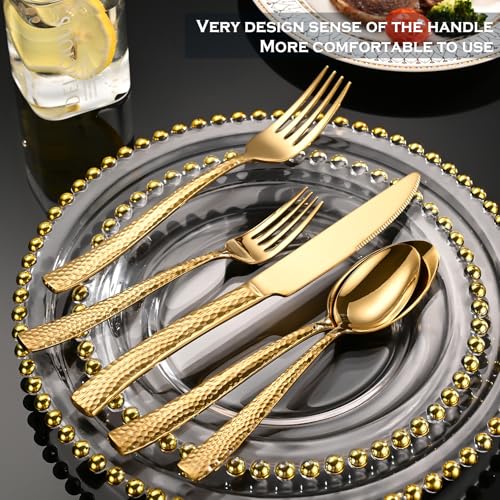 ?PERFECT GIFT?The unique hammer pattern design adds flavor to your dining table in any setting, such as home, restaurant, and hotel. This heavy-duty silver cutlery set is also an excellent choice to give to family and friends during various holiday celebrations