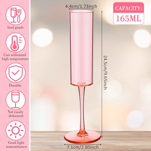 Elegant Design: the plastic champagne flutes have glass like appearance, clear pink flute body and delicate foot design, and they will make your dinner time more enjoyable, and the sleek lines add a touch of modern elegance to any party