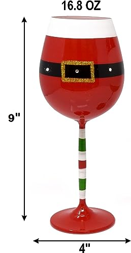 Gift Boutique Christmas Wine Glasses 16.8 Oz Set of 2 Festive Santa Belt and Snowman Drinking Goblets Cups with Stem Xmas Wineglass Gift Red Green and White Colored Painted Winter Glassware