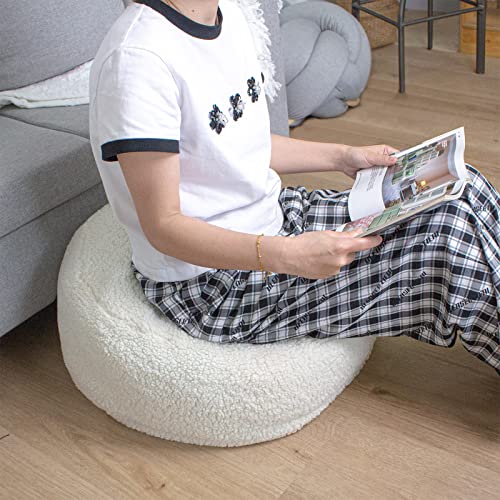 GLAXYFUR Unstuffed Pouf Cover, Sherpa Fleece Faux Fur Foot Stool, 20x13 Inches Fuzzy Chair, Round Storage Pouf for Living Room, Bedroom, Cover ONLY Cream White