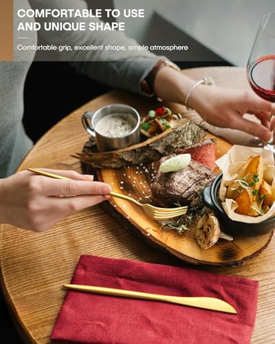 Exquisite Workmanship -Crafted from food-grade stainless steel, these Gold Flatware Set offers superior durability and safety. Smooth surface and edges, fade-resistant, rust-free, Dishwasher Safe. Enjoy a seamless dining experience with elegant&hassle-free modern tableware set.