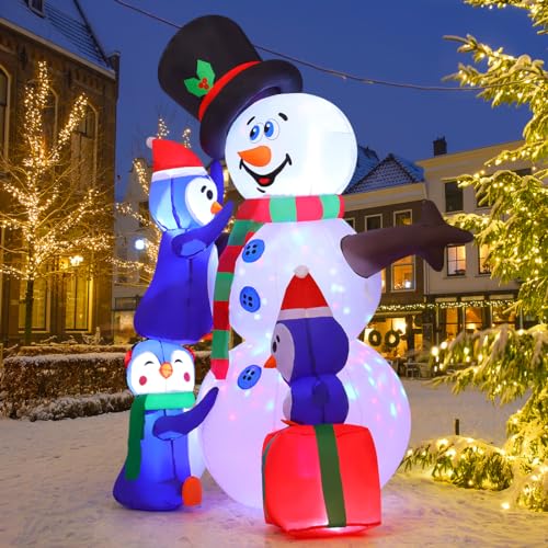 OUTDOOR CHRISTMAS INFLATABLES: The Christmas Inflatable snowman and the 3 Penguins will transform the front of your house into a beautiful Winter Wonderland! They are whispering, smiling warmly. Inflable navidad provide a feeling of warmth in everyone's hearts throughout the chilly season