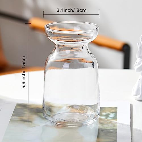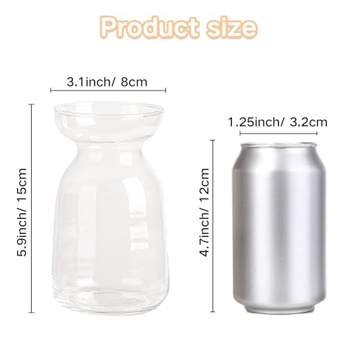 DECORATIVE VASE: This product features a sleek and modern design that can be utilized as both a glass vase and a container for fresh flowers. Crafted with high-quality glass, it ensures a satisfying experience. With a height of 5.9 inches, an opening diameter of 3.1 inches, and a bottom diameter of 3.34 inches, it offers versatility and aesthetic appeal.