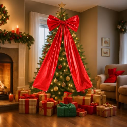 Giant Bow for Christmas Tree: red glitter bows for Christmas tree with dimensions of approximately 43 inches in length and 15 inches in width, this bow makes a bold statement; Its substantial size ensures it stands out as a focal point in your holiday decoration arrangements