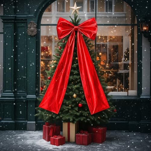 Dazzling Glitter Cloth Elegance: red bows for Christmas tree crafted from metal foil fabric, our red glitter bows shines bright, adding a touch of sparkling to your decoration; This giant bow for Christmas tree very suitable for outdoor and indoor decoration, adding a festive atmosphere, hard-wearing, Wind-resistant, tough and durable to use