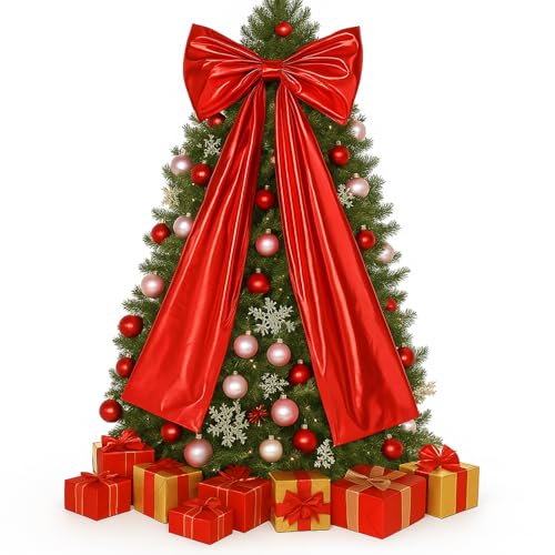 Giant Bow for Christmas Tree: red glitter bows for Christmas tree with dimensions of approximately 43 inches in length and 15 inches in width, this bow makes a bold statement; Its substantial size ensures it stands out as a focal point in your holiday decoration arrangements