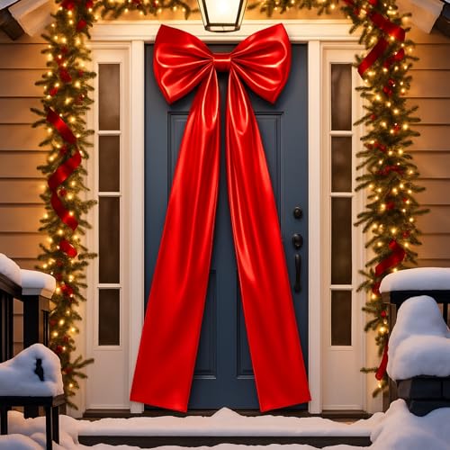 Dazzling Glitter Cloth Elegance: red bows for Christmas tree crafted from metal foil fabric, our red glitter bows shines bright, adding a touch of sparkling to your decoration; This giant bow for Christmas tree very suitable for outdoor and indoor decoration, adding a festive atmosphere, hard-wearing, Wind-resistant, tough and durable to use