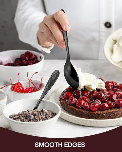 High-quality Stainless Steel - The black cutlery set is made of high-quality stainless steel, with high grade forging technology. Double-sided hammered handle not only beautiful, but also add a calm texture. The appropriate weight and heavy-duty structure ensure that the cutlery can withstand daily use and is not easy to bend or break. EUIRIO cutlery has both texture and weight. Every time you hold it, it is a recognition of its quality.