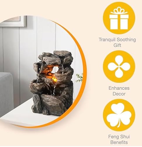 oothing water sound: A tranquil waterfall provides soothing sounds and meditation/zen atmosphere, and the LED light can be used to illuminate the water as it cascading, when night comes, add a unique charm to your room.