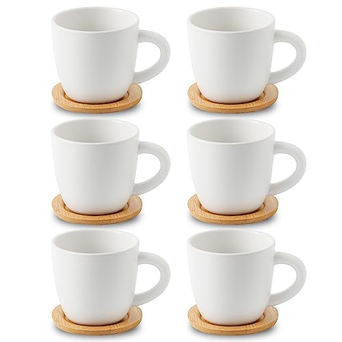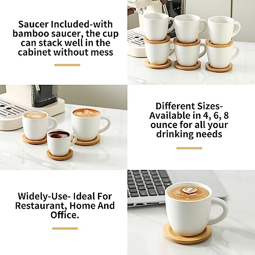 NATURAL COLOR GLAZE: The cappuccino cups are designed with classic white color which can perfectly fit your espresso machine. The white coffee mugs with saucers have a cafe look that make you feel as if you are tasting your espresso at a coffee bar.