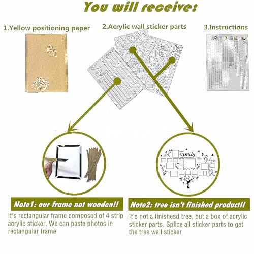 This product requires splicing: You will receive a box of sticker parts, please splice all sticker parts together on a smooth surface, then you will get perfect family tree wall decor for living room.