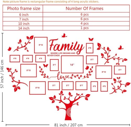 Super sticky: Unlike vinyl stickers that have a short service life and can easily fall off and be damaged, this tree wall sticker has a very long service life, and it can maintain super adhesion to the wall for many years. Total size of the picture frames collage wall decor (width x height): 207 x 146 cm.