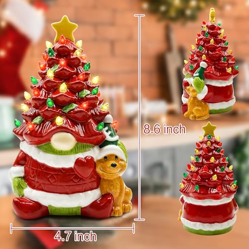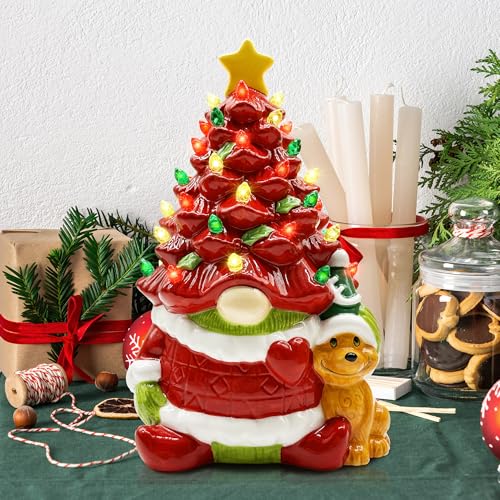 SUPERIOR QUALITY CERAMIC CHRISTMAS TREE - This Christmas red gnome is made of superior quality ceramics with adorable color. Red and green colors are bright, beautiful Christmas decorations for home. With delicated craft of ceramic, feels smooth, glows a beautiful light in the daylight and night. Packed with foam insert, easy to store, will be well-protected from damage. GREAT CHRISTMAS GNOME GIFTS FOR WOMEN, MEN, KIDS, GNOME LOVERS.